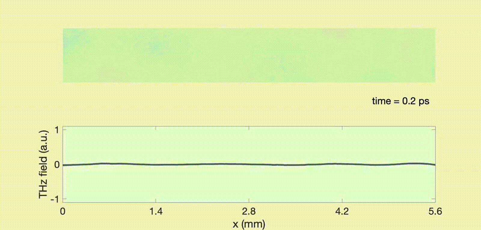 “共线模间”干涉原理【待更新】 铌酸锂片上的太赫兹集成器件的基础是各向异性亚波长平板波导,也就是作为基底材料的铌酸锂晶片中太赫兹波传输的性质。我们借助时空超分辨成像实验系统,系统研究了瞬态亚波长情形下的一系列光学效应,并实现了对片上太赫兹波传输模式、模式动态转化、相位调制、能量分布调制、以及非对称传输等。这些基础工作为研究瞬态亚波长光学和光子学中的新物理提供了引导,同时也为未来铌酸锂片上太赫兹应用提供了借鉴。