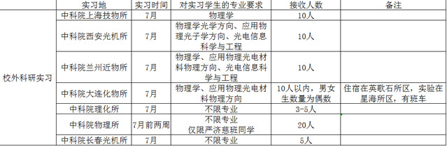 1.科研实习报名选拔原则为:志愿优先,相同志愿则专业(或学科)优先,相同专业(或学科)则成绩优先;学生可以选择除上述安排以外的实习单位(要求须为物理类科研单位,需自行联系,截至时间为6月11日),伯苓班学生直接填写赴国外科研实习的单位名称(中文);