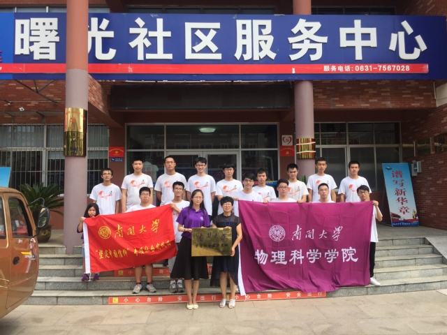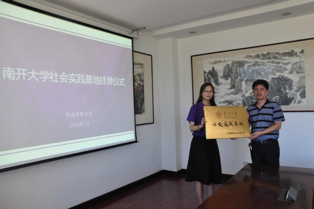 在此次实践中,实践队在荣成市教育局和崖头街道曙光社区挂牌成立了“南开大学学生社会实践基地”。荣成市教育局局长刘忠伟、社区书记岳晓丽分别出席了挂牌仪式。