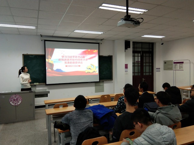 最后,吴宵宵希望各班、各支部、各学生组织积极开展“习近平总书记在庆祝改革开放40周年大会上的重要讲话”主题学习,引导同学们弘扬伟大改革开放精神 ,抓住历史变革时机,奋发有为,锐意进取,在新时代将改革开放进行到底。