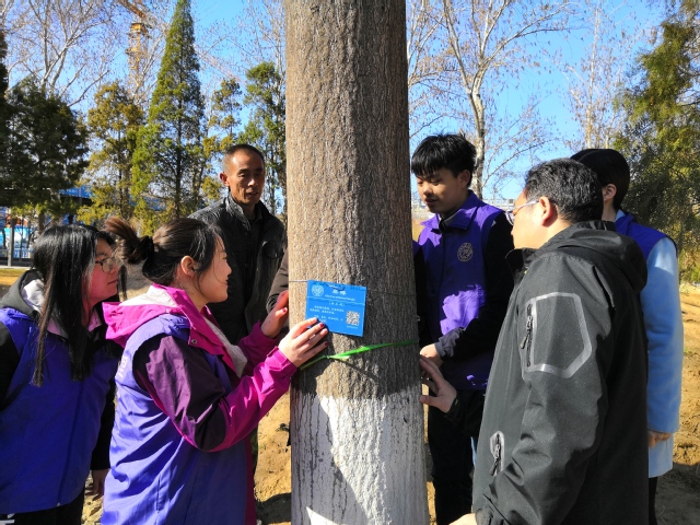 同学们在生命科学学院师生的指导下,更加了解了校内植物的种类,学校的绿化情况,在春季走出宿舍,为树木挂上带有名称和解说的标示牌子,并且通过手机扫描二维码,就可以了解更多的信息。