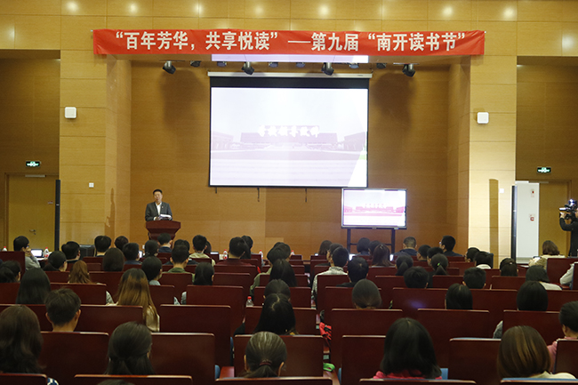 在4月23日“世界读书日”当天,以“百年芳华,共享悦读”为主题的第九届“南开读书节”在南开大学津南校区图书馆开幕。南开大学副校长朱光磊出席开幕式,来自全校200余名师生代表共同参加。学院党委副书记赵爽、余华副教授代表学院参加了开幕式相关活动。