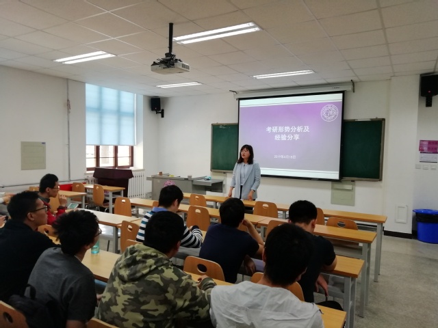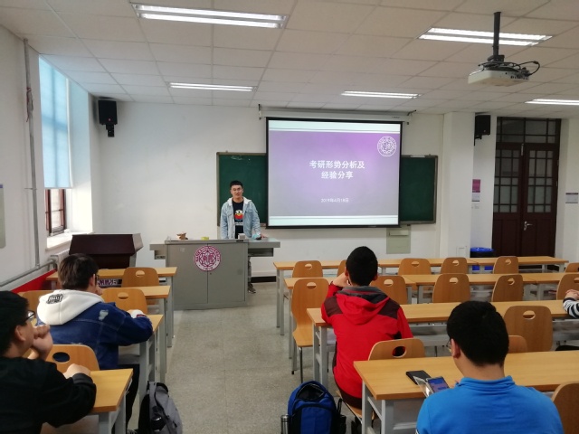 首先看球88 辅导员韩远欣对2019年考研的形势进行了简单介绍。随后,2015级本科生徐睿、杨东浩、赵祥钧分别就考研复习过程中的复习计划、日常作息以及复习所用参考书籍等经验作了分享,并对同学们有疑惑的问题进行了解答,整场活动气氛非常热烈。