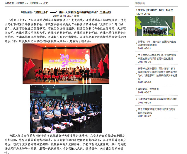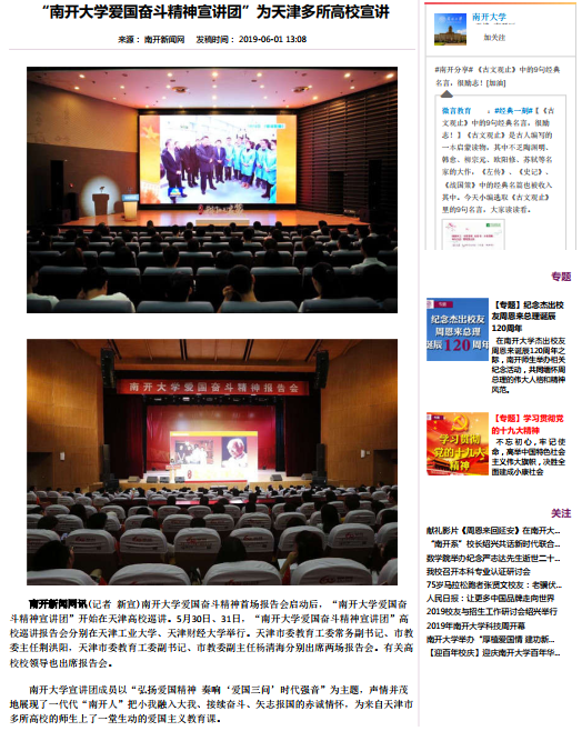 【天津日报】“南开大学爱国奋斗精神宣讲团”走进天津工业大学