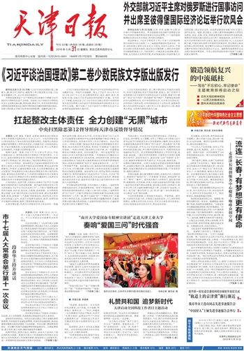 天津理工大学学生会主席、英语专业大二学生赵思瑶表示,大学是我们成长成才的重要阶段,爱国主义的贯彻在这一阶段尤为重要,作为大学生的我们,应该深入理解爱国主义的内涵,把自己的真才实学同报效国家的志向结合起来,担负起时代赋予我们的使命,在学习工作中践行爱国主义,为国家和民族作出应有的贡献。