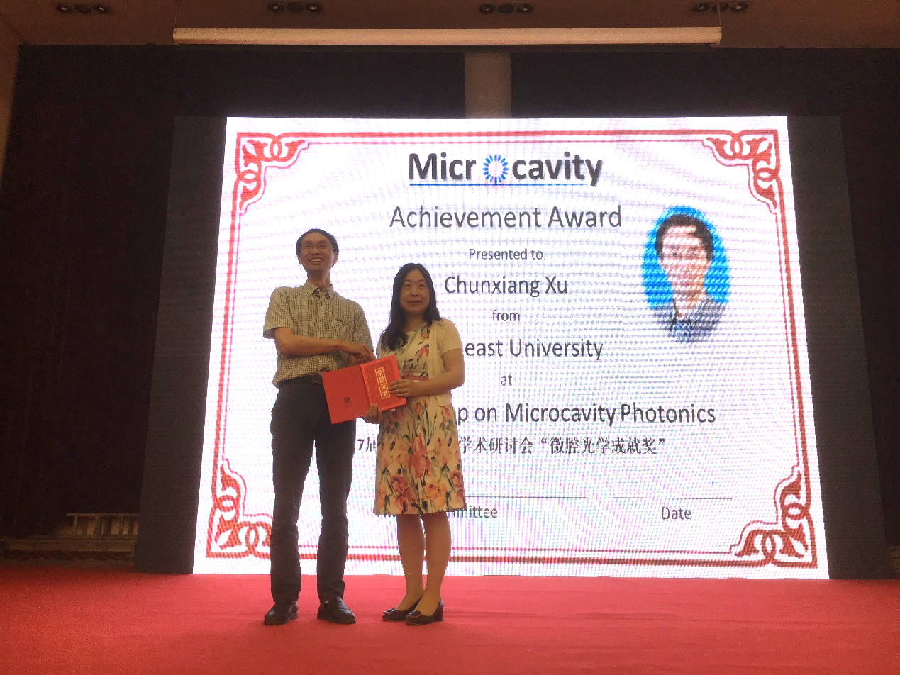 会议设立了微腔光子学成就奖和青年科学家奖,奖励从事微腔光学领域的表现突出的专家、学者。东南大学徐春祥教授获微腔光学成就奖,西安光机所张文富研究员和中山大学刘进教授获得微腔光学青年科学家奖。此外,会议还设置了“最佳张贴报告奖”,获奖人分别是来自中国科学技术大学的胡昕欣、南开大学的高昂、北京大学的陈豪敬、上海微系统所的田子傲和西北工业大学的元晴晨。