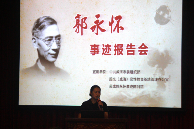 随后,郭永怀事迹宣讲团成员、荣成博物馆宣教部讲解员王莹在大会上进行了郭永怀事迹宣讲。王莹结合PPT与视频短片,为与会各院校教师讲述了这位优秀共产党员、人民英雄、伟大科学家郭永怀先生感人至深的故事,诠释了郭永怀先生对伟大祖国的真挚情感和对科学事业的不懈追求。一段段感人的故事,一张张生动的画面,充分展现了郭永怀先生以身许国、无私奉献的家国情怀,台下听众被郭永怀先生爱国奉献的赤子之心深深感染,不少听众情不自已,流下了泪水。报告会反响热烈,大家纷纷表示,我们要向郭永怀先生学习,怀爱国心、立报国志,勇做走在时代前列的开拓者和奋进者。同时,科研报国、以身许国的精神和我们“三全育人”工作的初心和目标是十分契合的,我们要以郭永怀先生等先辈为榜样,大力弘扬爱国主义教育和科研报国精神,积极推进“三全育人”工作的深入开展。