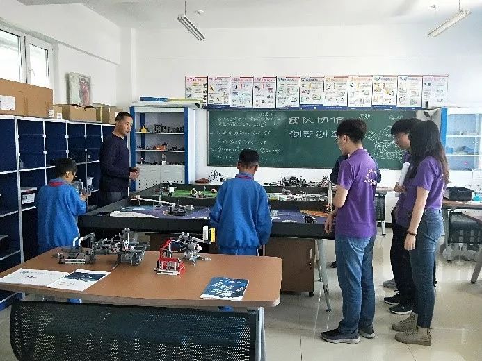 随后,祁连山小学德育主任马琳为实践队介绍了学校的科普情况并带领队员们参观了学校的机器人教室及其他科普设施。