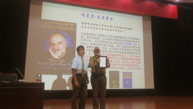6月30日下午,英国皇家爵士、英国皇家科学院院士、英国布里斯托大学迈克-贝里教授在陈省身楼二楼报告厅做了题为“Geometric Phases and the Separation of the World”的百年南开大讲坛专场报告,并由南开大学看球88 院长张国权教授颁发“百年南开大讲坛主讲人”纪念奖牌,到场师生200余人。