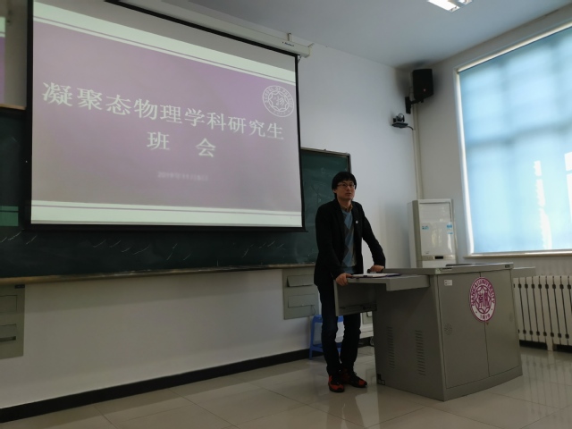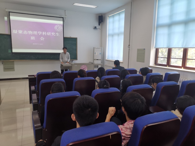 11月5日,看球88 举行凝聚态物理学科研究生班会,学院党委副书记兼副院长张学良、凝聚态物理学科负责人胡振芃、研究生辅导员阎宝岩及近百名研究生参加。