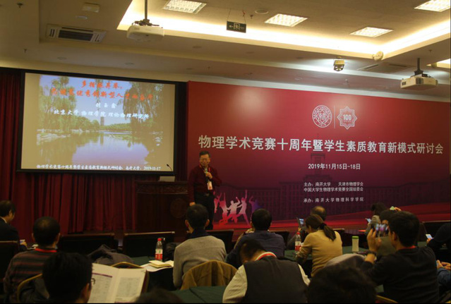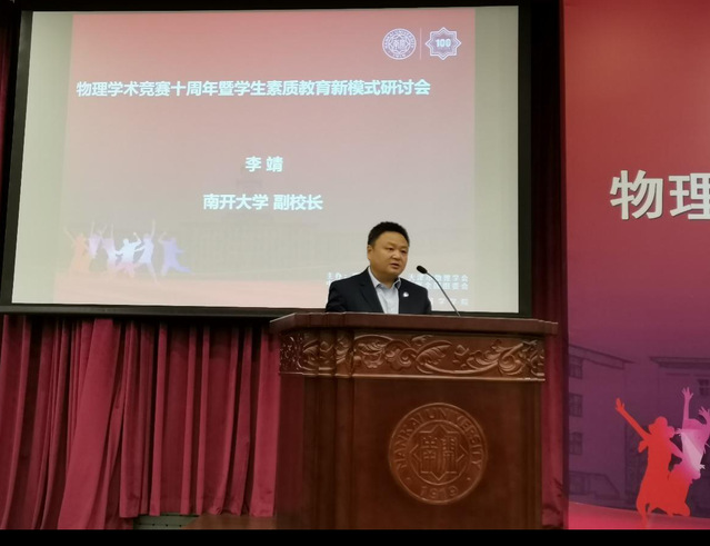 李靖在致辞中说,南开大学在百年的办学实践中,一直有重视本科教育的鲜明特色和光荣传统,进入新时代以来,更是积极开展教育教学的探索与革新。在物理类人才的培养方面,更应该积极推进素质教育改革,坚持德育为先、能力为重、全面发展,并推进中学和大学的有机衔接。本次研讨会正是对十年来物理学术竞赛在教育教学改革方面成果的阶段性总结,也是将物理教育教学改革推向纵向发展的契机。