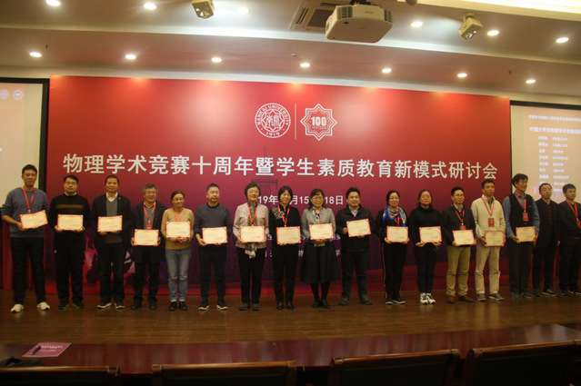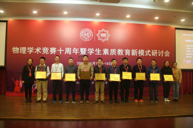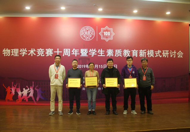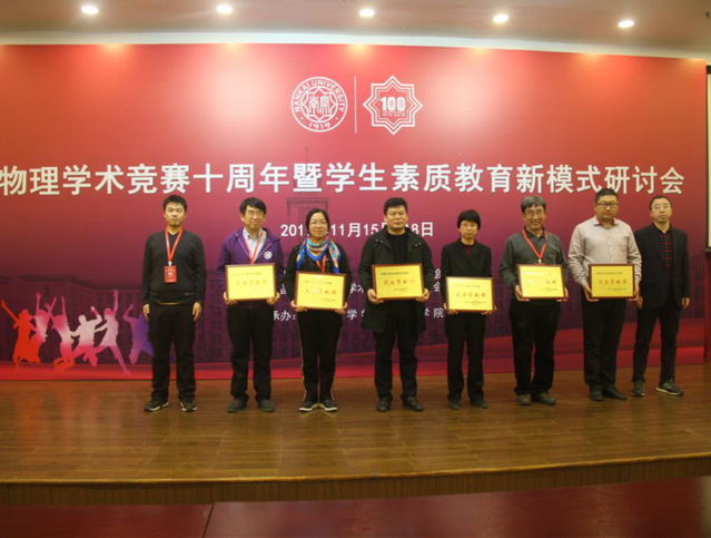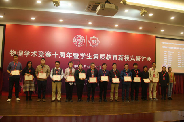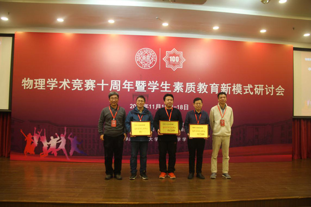 研讨会于11月17日下午在南开大学省身楼举行了闭幕式,中国物理学会物理教育委员会秘书长刘玉鑫教授作了题为“多措施并举,为培养优秀创新型人才而奋斗!”的大会报告,中国大学生物理学术竞赛组委会和中国高中生物理创新竞赛组委会为积极开展物理学术竞赛教学活动并在教育教学改革方面取得丰硕成果的单位级个人进行了表彰。分别授于63个单位及个人“物理学术竞赛突出贡献奖”、“中国大学生物理学术竞赛组织工作先进单位”、“中国大学生物理学术竞赛组织工作先进个人”、“中国高中生物理创新竞赛组织工作先进单位”、“物理学术竞赛教育教学改革先进单位”、“物理学术竞赛教育教学改革先进个人”并颁发证书。