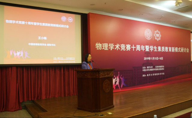 王小梅在致辞中表示,中国大学生物理学术竞赛的形式体现了以人才培养为中心的理念,深入推动知识传授、能力培养与价值理念的有机结合,把培养学生的创新精神和实践能力作为重要着力点,提升学生知行合一的实践能力,是强化素质教育,培养德智体美全面发展的社会主义建设者和接班人的有效实践。