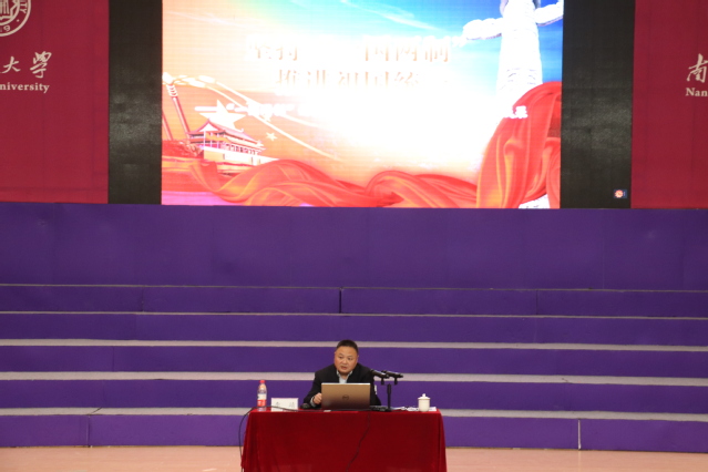 (通讯员 吴宵宵)为深入学习贯彻党的十九大精神,进一步培养学生的爱国主义精神,11月21日,李靖副校长为看球88 师生讲授“形势与政策”课,课程主题为《坚持“一国两制” 推进祖国统一》。学院全体本科生、领导班子及部分教师参加了学习活动。