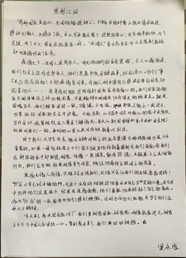 疫情来袭,84岁的钟南山院士,率众多精兵强将挥师武汉,竭力挽救陷于水深火热的无数人民;各地医生齐心,翩翩白衣背负起请战书上一枚枚血红的、触目惊心的指印,置生死于度外,奔赴一线抗疫。前线医护人员怀着一颗赤子之心为祖国“出征”,他们值得我们所有人致敬。支部组织成员拍摄祝福语为他们加油!为武汉加油!为中国加油!