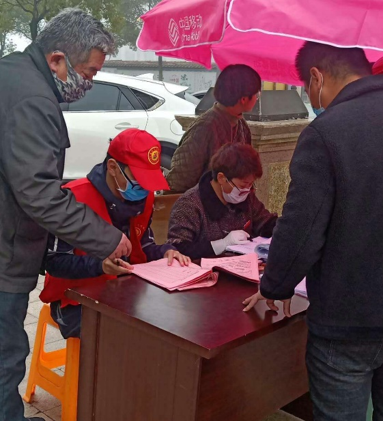 在村口检查站轮流值班,帮助村民完成抚州市防疫健康信息填写。