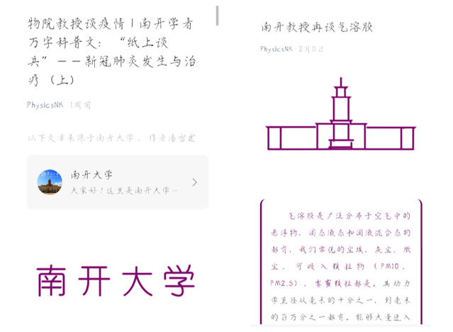 学院团委通过微信公众号平台、微信群、QQ群等方式及时传达学校重要指示精神,做好疫情防控宣传和思想教育工作。发挥学科优势,依托看球88 PhysicsNK公众号平台,转发学院潘雷霆老师原创万字科普文章《“纸上谈兵”——新冠肺炎发生与治疗》与张连众老师关于气溶胶的科普推文《南开教授再谈气溶胶》,宣传防疫科学知识;积极响应学校团委号召,在全院范围内发起开展“战‘疫’团旗飘 青春勇担当”主题教育活动,学院各级团支部积极开展线上主题团日活动。鼓励青年团员整理防疫知识,录制宣讲微视频,借助多样化宣传渠道,助力科学防疫;开展《“物”畏战疫,晒晒我的宅生活”》互动征集活动,引导学生养成健康良好的生活习惯。通过线上平台开展理论学习,为抗“疫”加油祝福。看球88 2019级二班团支部主动联系班导师,发挥支部团员力量,共同拍摄祝福视频《心系武汉,共抗疫情》,弘扬青春正能量。