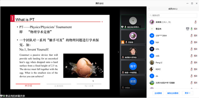 据了解,CYPT赛事已经覆盖全国近20个省市的百余所中学。本次线上CYPT正式比赛将持续两天,参赛队将轮流担任正方、反方和评论方三方角色,就竞赛题目进行了实验展示、激烈辩论和交流分享。