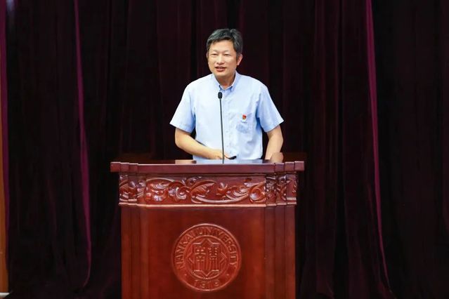 侯自新向全体新生表示热烈祝贺与欢迎,深情回忆了南开数理学科的发展历程,讲述了南开大学理以强国的办学理念与前辈们筚路蓝缕的创业之坚,南开数理学科拥有今天强劲的实力与突出成就来之不易。他勉励新生要努力学习、不畏困难、奋发向上,并预祝同学们学有所成,不负总书记嘱托,在新的起点作出属于这一代人的历史贡献,成为南开大学新的骄傲。