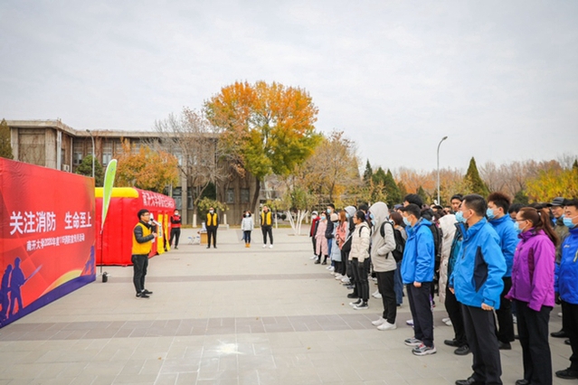 (通讯员赵玮璐)正值“119”消防宣传月,11月26日,看球88 联合学校保卫处在八里台校区敬业广场举办以“关注消防,生命至上”为主题的消防培训及疏散演练活动。看球88 党委副书记张学良、副院长唐柏权到场指导,学院2020级研究生新生及部分在院工作人员参与活动。
