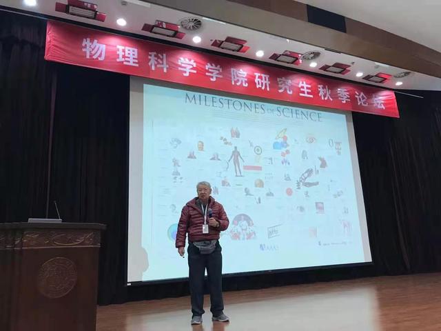 原天津物理学会副理事长、76岁高龄的李学潜教授致开幕辞。开幕式上,李教授寄语年轻人也可以做出“大工作”,鼓励同学们在解决“小问题”的同时也要思考“大问题”。他谈到,“在物理学各个领域都有众多问题等待大家去发现、解决,我们既要脚踏实地,也要心怀理想,希望同学们通过本次论坛,开拓视野、碰撞思想,充分利用现在的时间、资源去做更多有意义的、重要的工作。”