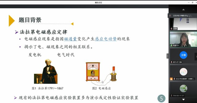 课堂内外,基础物理实验中心一直是同学们坚强的后盾。在“新冠”疫情的特殊情况下,从7月初组队开始,老师和参赛学生们积极做好参赛各项工作。在大部分学生还未返校的情况下,领队王槿老师、辅导员吴宵宵、韩远欣老师与参赛学生通过网络沟通,完成防疫系统返程审批、综合实验楼入楼审批等工作;指导老师们通过网络将学习资料第一时间提供给学生们。在学生们返校前,实验中心的老师们已做好实验室防疫各项安全准备工作,包括疫情防控图、实验室开放使用说明、物理学院返岗日常记录表、复课开学后实验室开放运行指导方案等。参赛学生返校后,学生们在老师的指导下利用暑假时间积极做好参赛准备。第1队学生完成了一种支持物理实验的变温装置的设计与制作;第2队学生完成了基于法拉第电磁感应原理的测量装置的设计与制作;第3队学生完成了自制荧光显微镜成像装置与实验测试;4队完成了多普勒效应实验的微课制作;5队队员完成了分光计实验PPT制作和试讲。根据9月份竞赛第二轮通知,10月中旬开始,参赛学生录制了命题类、自选类和讲课类的视频,并根据指导老师提出的建议进行了反复修改。经过初审和网上评审环节进入复赛。复赛前,实验中心组织了若干次答辩预演,孔勇发、姚江宏、张心正、刘丽飒、李文华、张思遥等老师参与指导。经过紧张备赛,12月13日,同学们在不透露学校和个人信息的情况下通过腾讯会议参加了复赛答辩,由多位评审老师给出评分,取得了优异的成绩。
