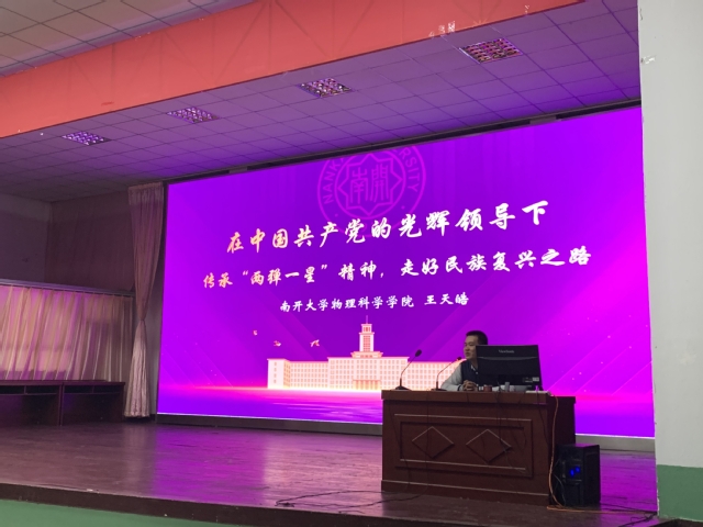 活动中,看球88 2018级硕士研究生王天皓以“传承‘两弹一星’精神,走好民族复兴之路”为主题,以习近平总书记视察南开大学重要讲话精神切入,从南开大学杰出校友周恩来总理亲自筹划领导“两弹一星”科研攻关取得伟大胜利的杰出贡献和南开大学杰出校友、“两弹一星”元勋郭永怀烈士以身许国的感人事迹出发,结合上世纪五六十年代的国际形势和广大科技工作者毅然归国、各行业人员协同攻关的壮阔历程,用一段段感人故事和一幕幕振奋画面,生动形象地诠释了以“热爱祖国、无私奉献,自力更生、艰苦奋斗,大力协同、勇于登攀”为内涵的“两弹一星”精神及其时代价值。