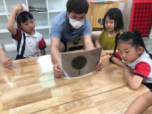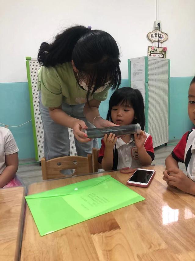 “小朋友们,哥哥姐姐给你们变一个魔术,小球可以穿过管道中间的挡板到另一边。”“哪个小朋友可以说一说纸上的风车怎么会自己转起来了呀?”学生党员们为幼儿园小朋友带来了饮水鸟、平衡鹰、穿墙而过等多个物理科普实验,通过通俗易懂的解释,在小朋友心中播下的了科学的种子,为孩子打开探索科学的大门。