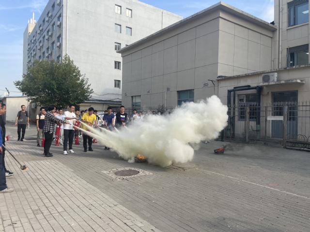 随后,在户外消防培训员向师生现场讲解了逃生面具、灭火毯、灭火器等消防器材的正确使用方法,并做了示范,指导师生化身“消防员”,分组实际操作灭火器进行喷洒灭火。