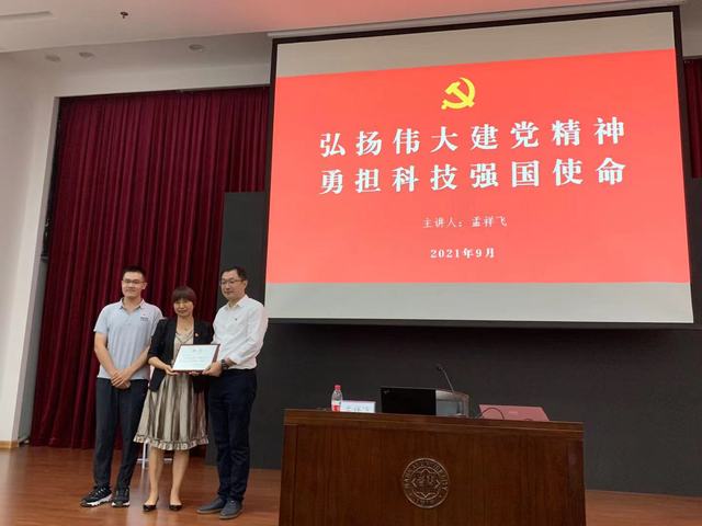 报告聚焦弘扬伟大建党精神,勇担科技强国使命。孟祥飞结合自身经历讲诉了我国“天河”系列超级计算机的发展历程。十多年前,孟祥飞由南开公派出国留学深造,深感国内外超算领域的差距。初心难忘,回国后的他得知国家超算天津中心组建的消息,毅然选择加入。不到一年的时间,孟祥飞和同事们就完成了机房建设和“天河一号”的安装调试。随后“天河一号”问鼎全球超算桂冠。孟祥飞描述道:“天河超级计算机是中国的‘争气机’,是‘国之重器’。中国科技工作者有卓越的能力,为世界科技进步做出重大贡献”。孟祥飞的经历鼓舞着各位青年党员学子,自觉担负起民族复兴的伟大使命,为实现我国科技自立自强贡献智慧和力量。