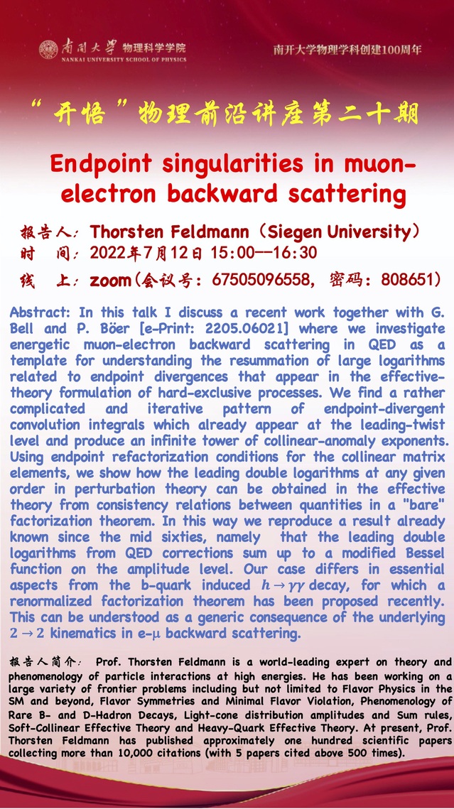 【“开悟”物理前沿讲座】(第 20 期)Endpoint singularities in muonelectron backward scattering
