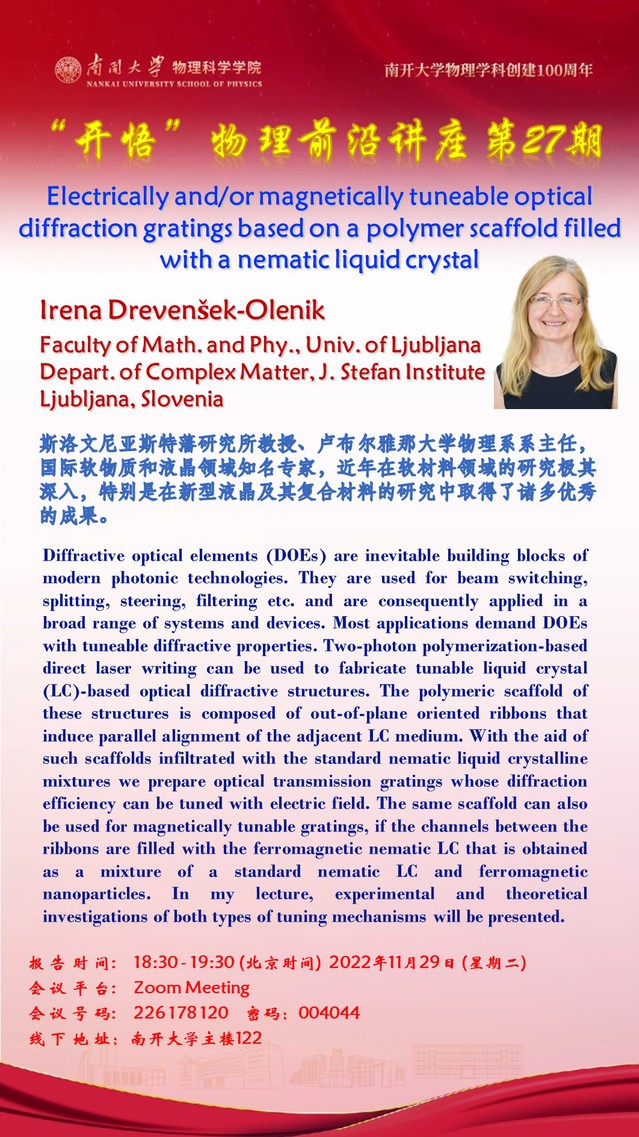 【“开悟”物理前沿讲座(第 27 期)】Electrically and/or magnetically tuneable optical diffraction gratings based on a polymer scaffold filled with a nematic liquid crystal