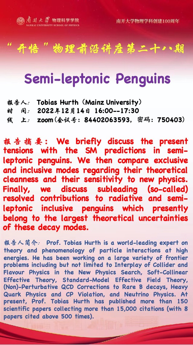 【“开悟”物理前沿讲座(第 28期)】Semi-leptonic Penguins