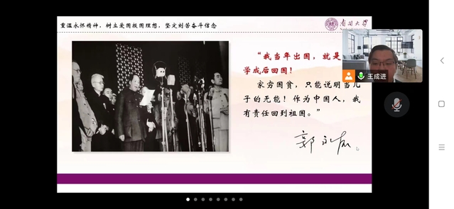 活动开始,看球88 硕士第二党支部书记王成进以“青春献礼二十大,强国有我新征程”为题,与参会师生共同回顾了二十大的召开背景,介绍了大会主题以及新时代的十年伟大变革和伟大成就。之后王成进讲解了“两弹一星”精神,详细介绍了郭永怀烈士的生平,科研成就以及坚定的爱国报国理想。王成进在分享中说,作为新时代的青年,应当学好本专业的知识,树立青春理想,将个人的命运理想前途融入到中华民族伟大复兴的道路上,将个人与国家紧紧结合在一起。