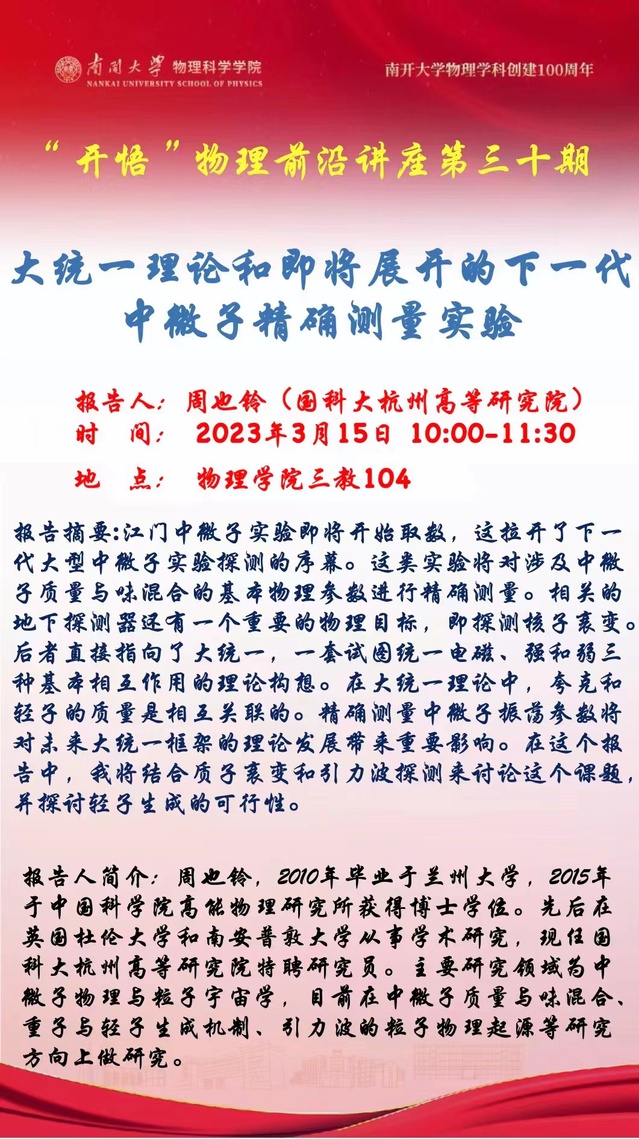 【“开悟”物理前沿讲座(第 30期)】大统一理论和即将展开的下一代中微子精确测量实验