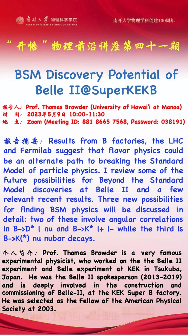 【“开悟”物理前沿讲座(第 41期)】BSM Discovery Potential of Belle II@SuperKEKB