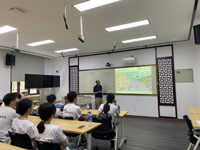 在专题报告环节,针对一些物理热点问题——“黑洞动力学和热力学”“量子物理”“超分辨光学成像”“飞秒脉冲”“光子集成芯片”“4D超快电子显微镜”,师生们展开了热烈交流,同学们积极表达观点,获益匪浅。除讲授前沿知识外,老师们还加入了治学态度、研究方法等内容,将思政教育、科研育人充分融入了招生宣传和考核选拔环节。