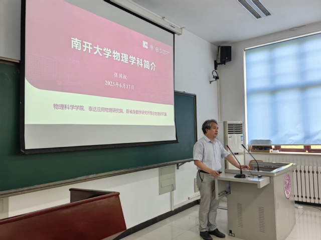 南开大学研究生院培养办主任李中,看球88 院长张国权、副院长常雷,各系系主任及教师代表出席开营式。李中为开营式致辞,他讲到,“南开大学作为一所综合性大学,有门类齐全的学科平台,有质朴优良的教师队伍,我们培养的是有大公、大能的人才。”张国权向同学们表示了欢迎,并着重介绍了百年南开物理历久弥坚的历史与传承,快速发展的学科平台,世界顶尖的代表性成果,期待营员们能够加入南开大家庭,共创未来。