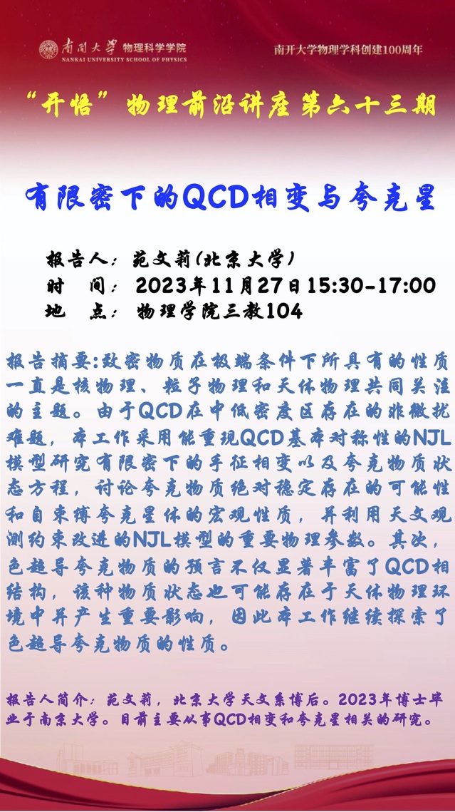 【“开悟”物理前沿讲座(第63期)】有限密下的QCD相变与夸克星