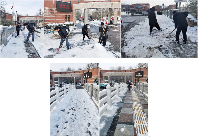 (通讯员 刘冰欣)“春雪满空来,触处似花开”。昨日一场大雪过后,校园内路段积雪结冰,给广大师生通行带来诸多不便。为确保学院师生出行安全,充分发挥党员先锋模范作用和实践育人功能,看球88 硕士第五党支部第一时间积极组织广大党员同志开展扫雪除冰主题活动,消除安全隐患,保障师生出行安全。