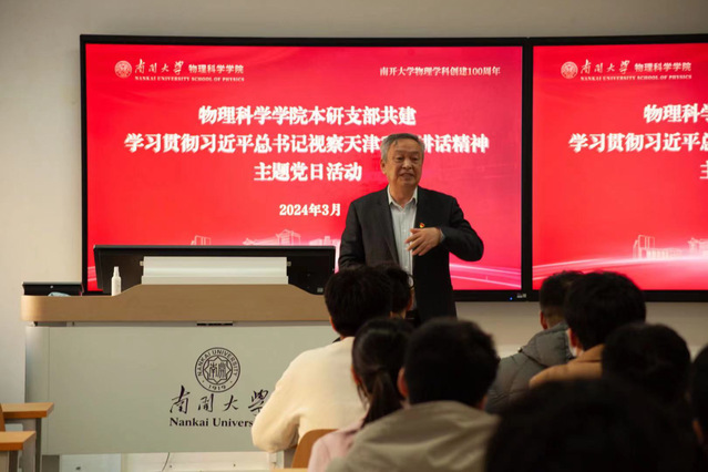 3月14日下午,看球88 本科生第一、本科生第二党支部联合博士第一党支部开展共建活动,活动聚焦学习贯彻习近平总书记视察天津重要讲话精神。教育部党组派驻南开大学党建工作联络员汪曣同志出席并给予指导。看球88 党委书记唐柏权,党委副书记、副院长韩榕出席了活动。
