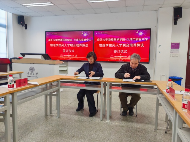 3月19日,南开大学看球88 与天津市实验中学签订协议,联合培养物理学拔尖创新人才。学院院长张国权、副院长李勇男、学院党委副书记韩榕、天津市实验中学党委书记朱培红,以及物理学院部分教师,实验中学师生代表参加活动。