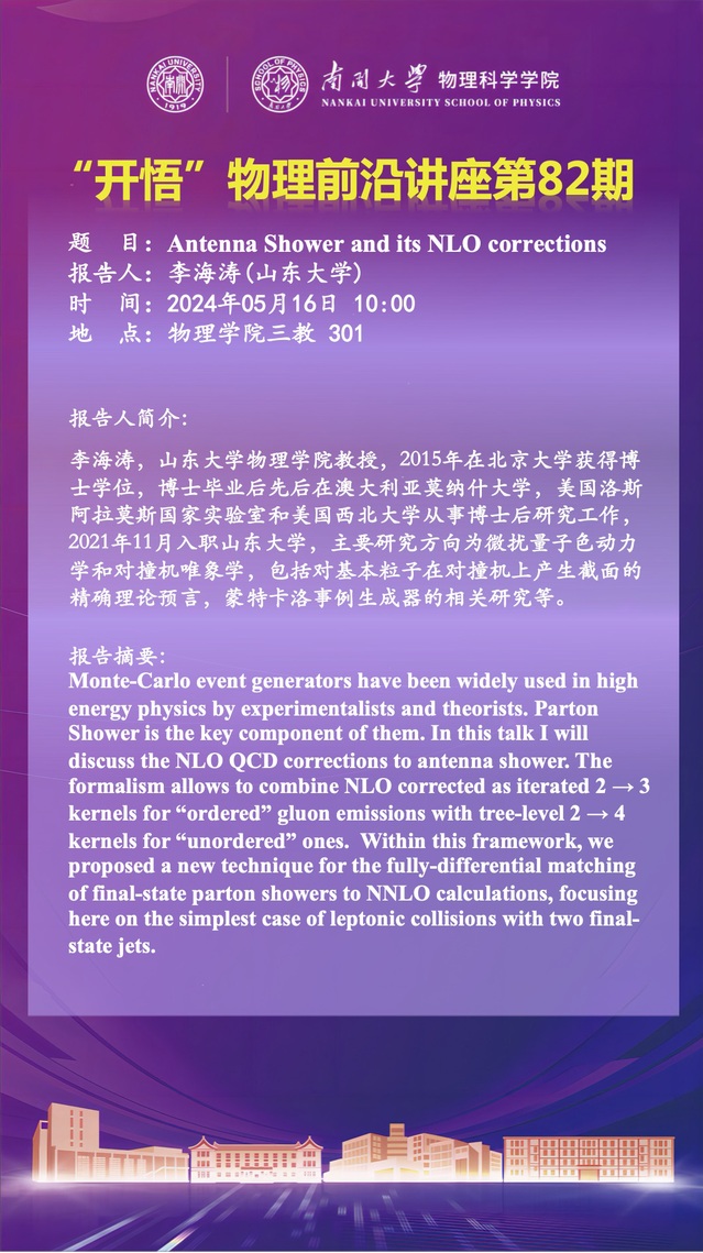 【“开悟”物理前沿讲座(第82期)】Antenna Shower and its NLO corrections