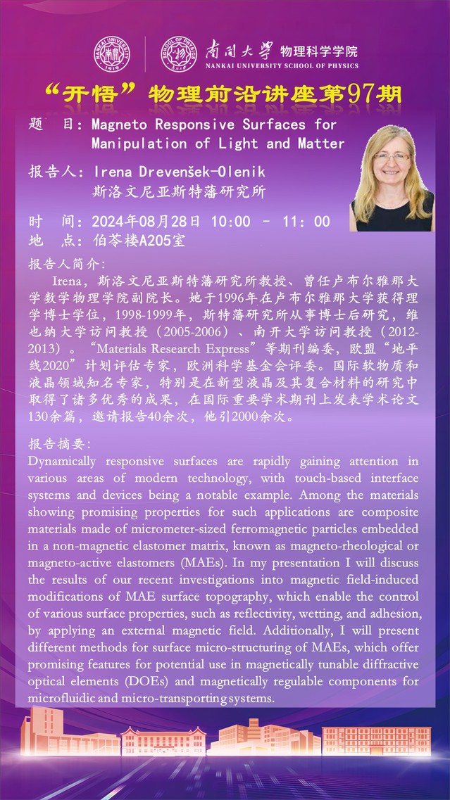 【“开悟”物理前沿讲座(第97期)】Magneto Responsive Surfaces for Manipulation of Light and Matter