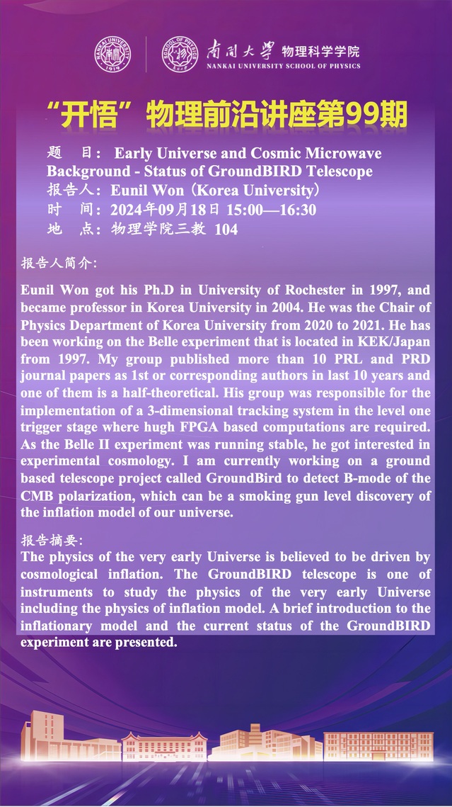 【“开悟”物理前沿讲座(第99期)】Early Universe and Cosmic Micowave Background-Status of GroundBIRD Telescope
