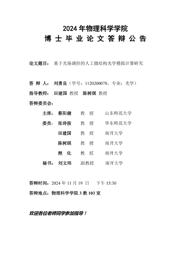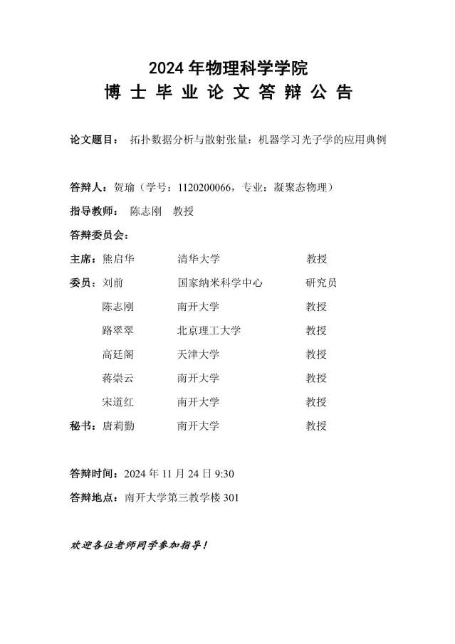 【毕业答辩】2024年秋季学期看球88 博士毕业论文答辩公告