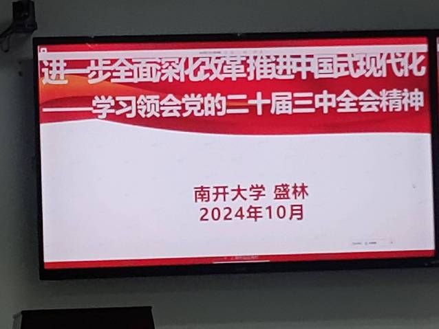 [通讯员:牛泽鋆 高敏]为深刻领会、全面学习贯彻党的二十届三中全会精神,近日,南开大学看球88 组织师生学习贯彻党的二十届三中全会精神,特邀马克思主义学院盛林教授进行宣讲和授课。此次宣讲和形势政策课面向南开大学看球88 全体教职工、以及学院全体本科生,共计600余人参加了此次学习。