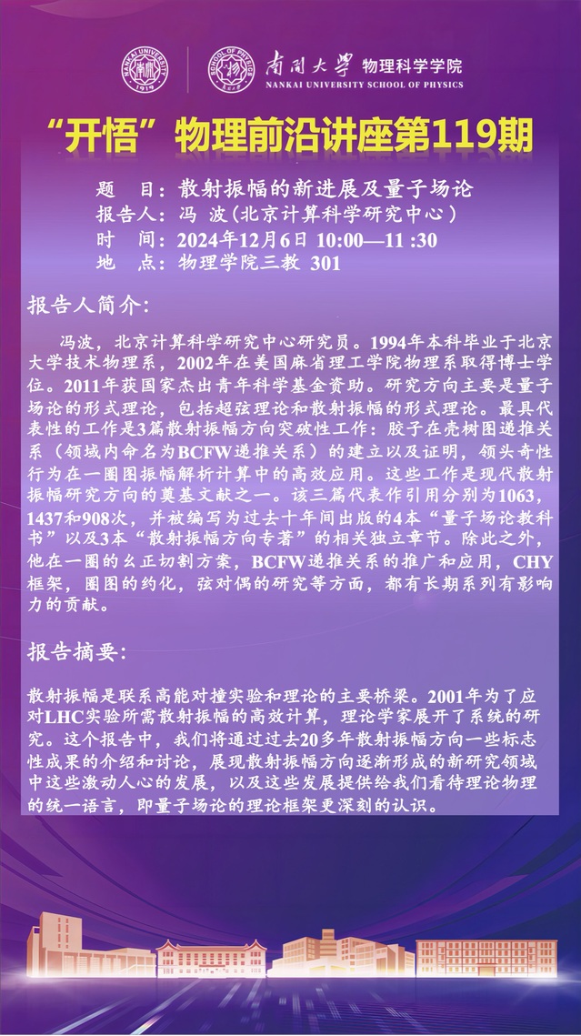 【“开悟”物理前沿讲座 (第119期)】散射振幅的新进展及量子场论