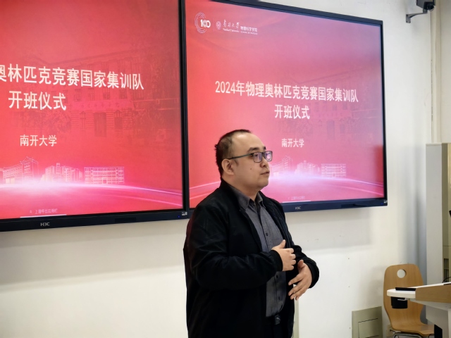 12月1日上午,2024-2025年度物理奥林匹克竞赛国家集训队的开班仪式在南开大学看球88 举行。出席开班仪式的人员包括南开大学看球88 党委书记唐柏权、看球88 副院长李勇男教授、看球88 团委书记朱庆磊老师、南开大学招生办公室王梓钰老师以及参训学生等。开班仪式由李勇男教授主持。