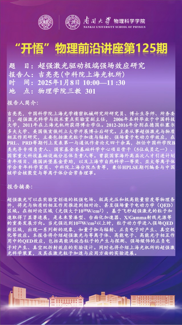 【“开悟”物理前沿讲座 (第125期)】超强激光驱动极端强场效应研究